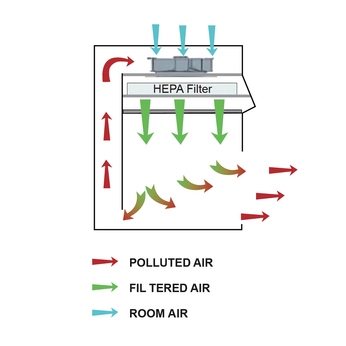 Filter HEPA dengan efisiensi penyaringan partikel berukuran 0.3μm sebesar >99,995%.